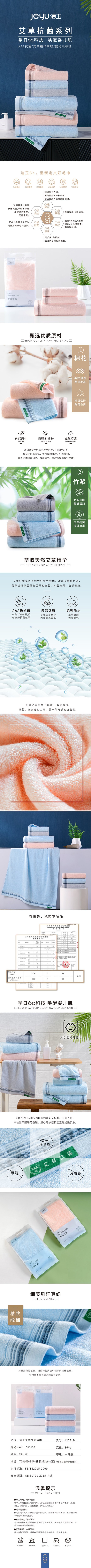 洁玉艾草抗菌浴巾J2731B颜色随机